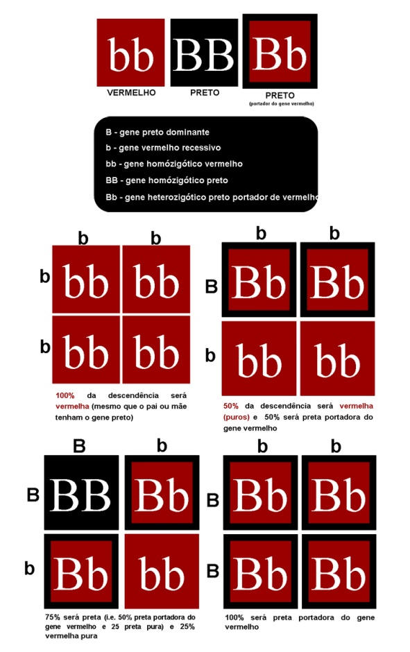 Entretanto, todos levavam o gene vermelho. Cruzamentos subsequentes produziram uma média de um bezerro vermelho a cada quatro, de acordo com a lei de hereditariedade de Mendel.